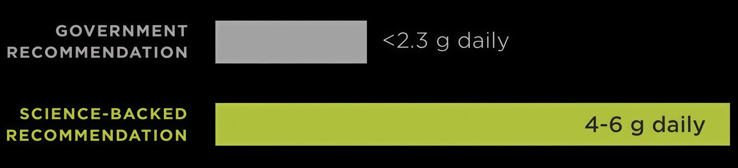 A growing body of research reveals that optimal health outcomes occur at sodium levels 2-3x government recommendations. That’s why we say, More Salt, Not Less.